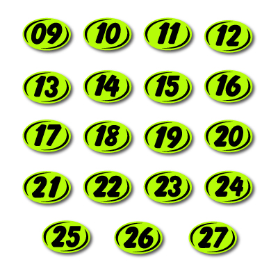 Let them know the vehicle's year model with our BOLD YEAR MODEL SIGNS! Black and Chartreuse Bold Oval, adhesive windshield year model sign. An inexpensive yet highly effective sales tool to advertise a year model! Sold by the dozen {12 per pack}. Size: 5 1/2" high x 8 1/2" long. Neatly shrink wrapped in packs of a 12 with a chipboard backer to prevent curling during storage. Made of durable, waterproof vinyl, these bright, non-fade signs demand attention! Each sign is slit on the back for easy application. Removable adhesive allows easy, clean removal. Please note these adhesive signs are not reusable.