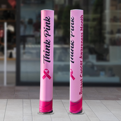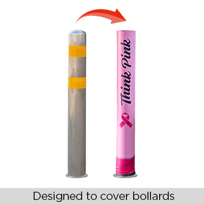 Easily add support for Breast Cancer Awareness with our vibrant bollard covers! High quality, full color imprint. Capture customer's attention instantly. Size 4.5" diameter x 48" tall. Other sizes also available, ask! Weather resistant, stretch fit polyester. Elastic bottom opening holds in place. For indoor and outdoor use.