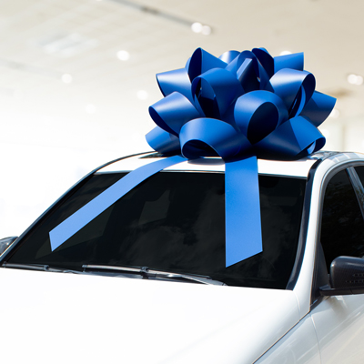 The industry's LARGEST car bow, now available for everyone! MADE IN THE U.S.A. High quality 50" giant bow. Indoor and outdoor use. Each bow has a soft, non-scratch magnetic base. Made of high quality weather resistant, weatherproof vinyl. No assembly required. Bows can be customized! Have your logo or custom message printed on the tails of the Commercial Bow!