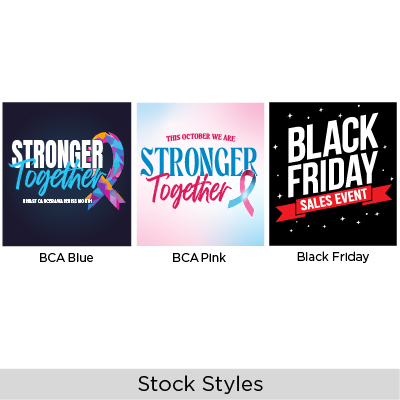 Easy and interchangeable coroplast billboard event displays. Show your support for breast cancer awareness or your Black Friday sale event with the coroplast billboard. Size: 30in wide x 41in tall. This display is frameless which makes it easy to swap stock signs. Each sign is full color, digitally printed, double sided and will give your event and seasonal message the visibility it deserves. Intended for indoor use.