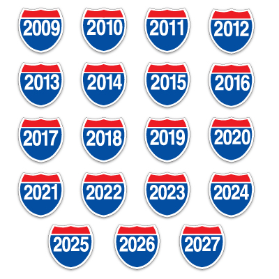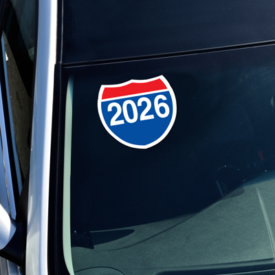 Highway Signs are a great way to advertise a feature, promotion, sale or year model. These non fade Red, White and Blue adhesive windshield signs are cut in the shape of a highway sign. Waterproof vinyl with a removable adhesive that leaves no gummy residue. 8 1/2" wide x 8 1/2" tall, neatly shrink wrapped in packs of 12 and sold by the dozen. Each sign has a chipboard backer to prevent curling during storage and is slit on the back for easy application.