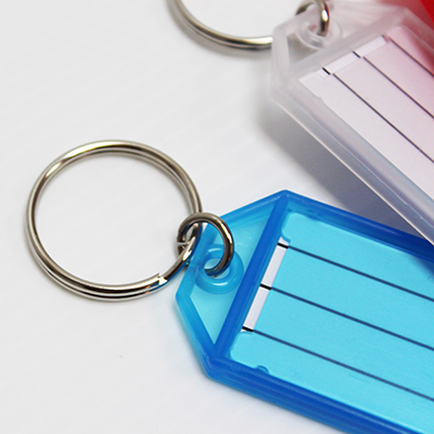 Unique design provides a simple yet effective method to protect key tag vehicle information. Transparent colored plastic helps you organize your vehicles and conveniently snaps open and shut to protect the replaceable paper insert from the elements. Each key tag is 1 inch tall x 2 1/4 inches long and is attached to a sturdy 1 inch diameter metal key ring. Sold 100 key tags per box. Available in Blue, Clear, Red, Yellow and Assorted (20 key tags each of Blue, Clear, Green, Red, Yellow).