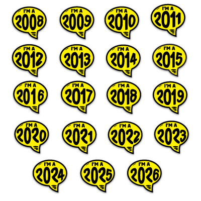 Let Your Vehicle do the Talking! Bright Yellow and Black bubble shaped, adhesive windshield decal. An inexpensive yet highly effective sales tool to advertise a feature or model year! Sold by the dozen {12 per pack}. Size: 7 1/2 inches tall x 9 inches wide. Neatly shrink wrapped in packs of a dozen with a chipboard backer to prevent curling during storage. Made of durable, waterproof vinyl, these bright, non-fade signs demand attention! Each sign is slit on the back for easy application. Removable adhesive allows easy, clean removal.